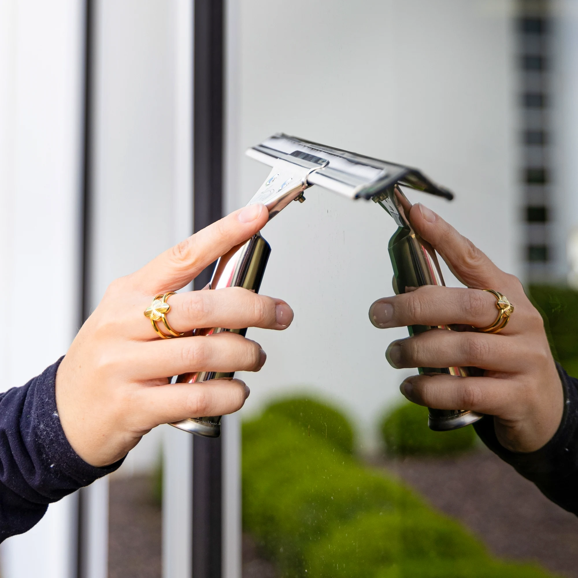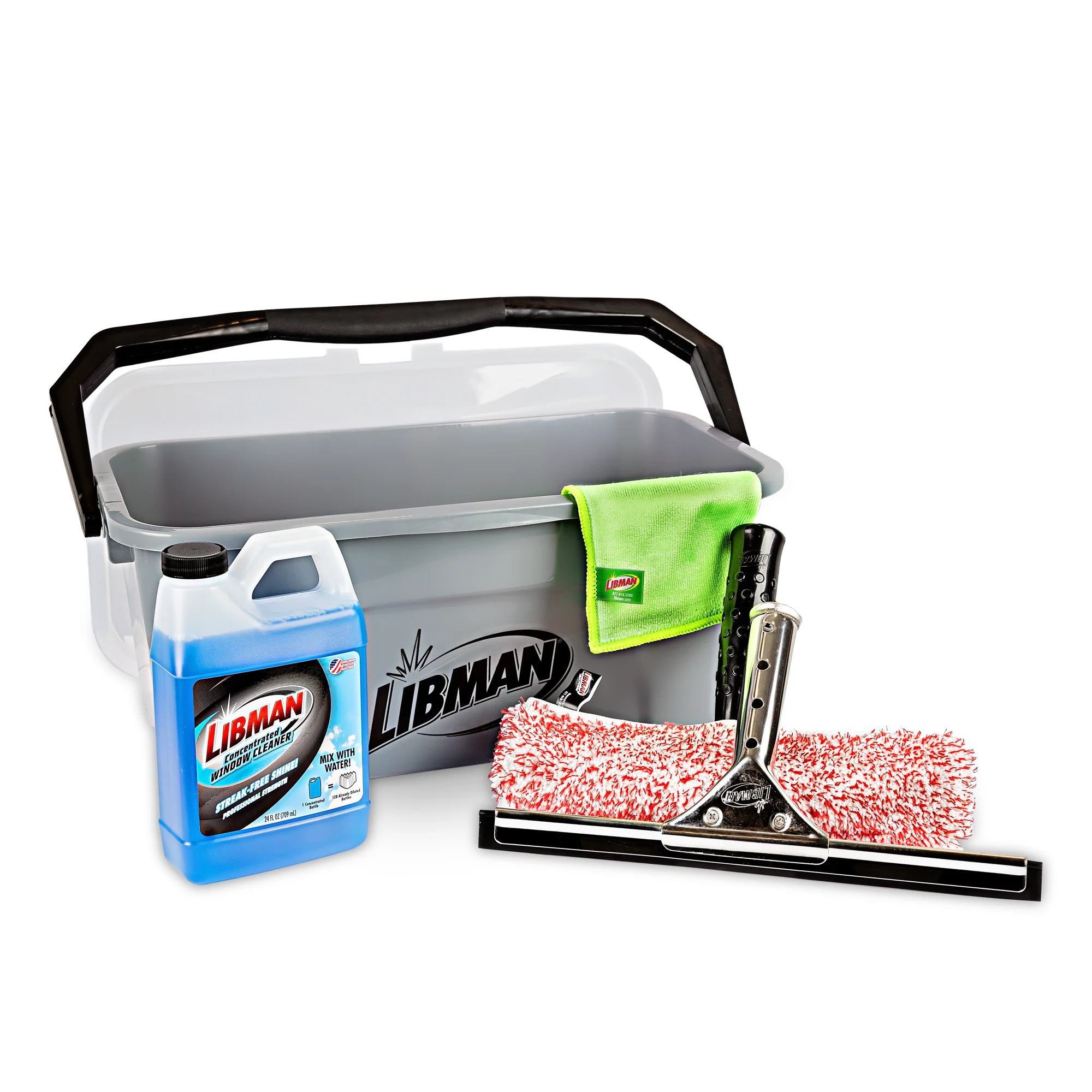 The Window Cleaning All-in-One Kit is a total solution kit for window cleaning. It includes the Concentrated Window Cleaner, 12” Stainless Steel Squeegee, Microfiber Washer, and Window Cloth.