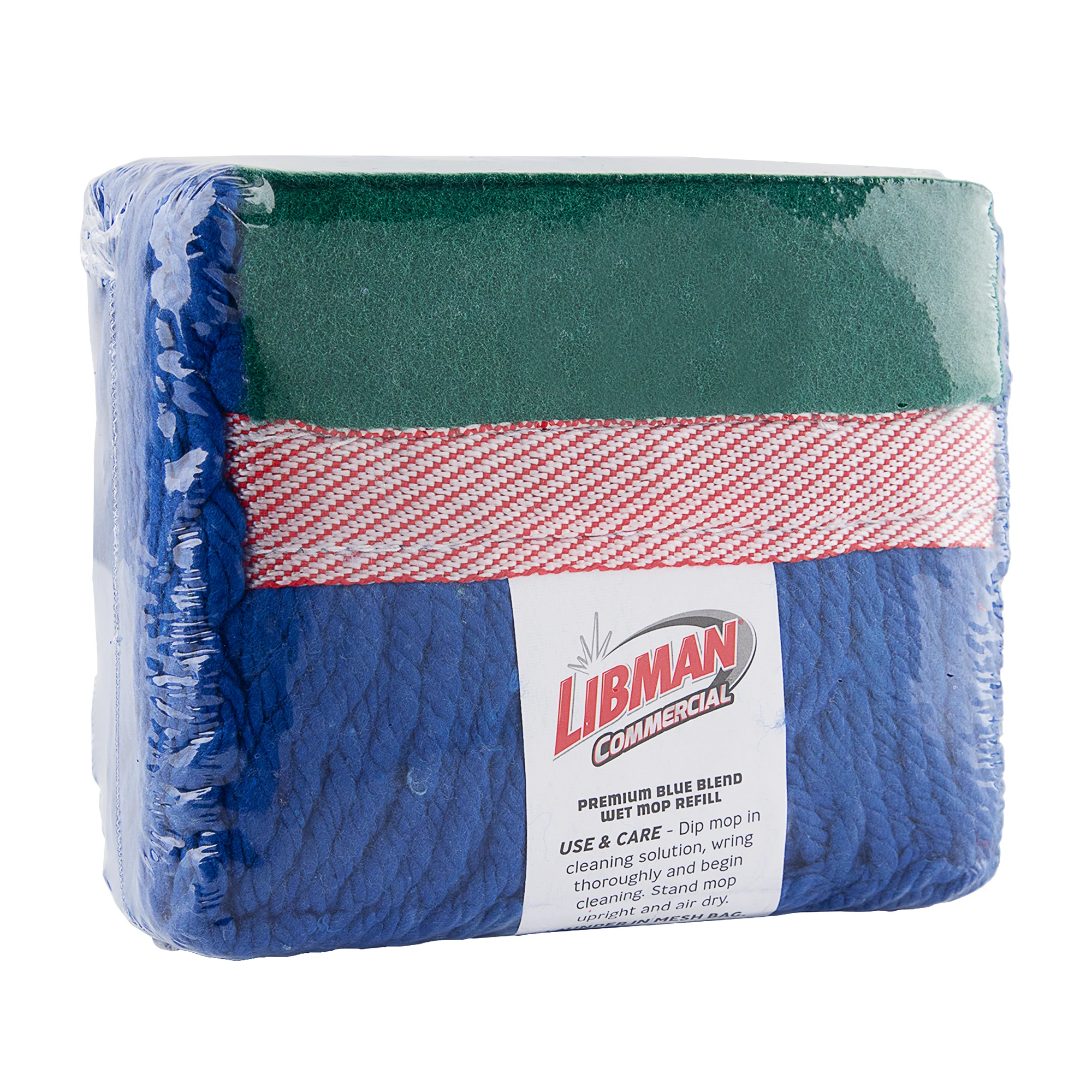 #1829 Large Blended Looped-End Wet Mop Head with Scrub Pad (Blue) Brick Pack
