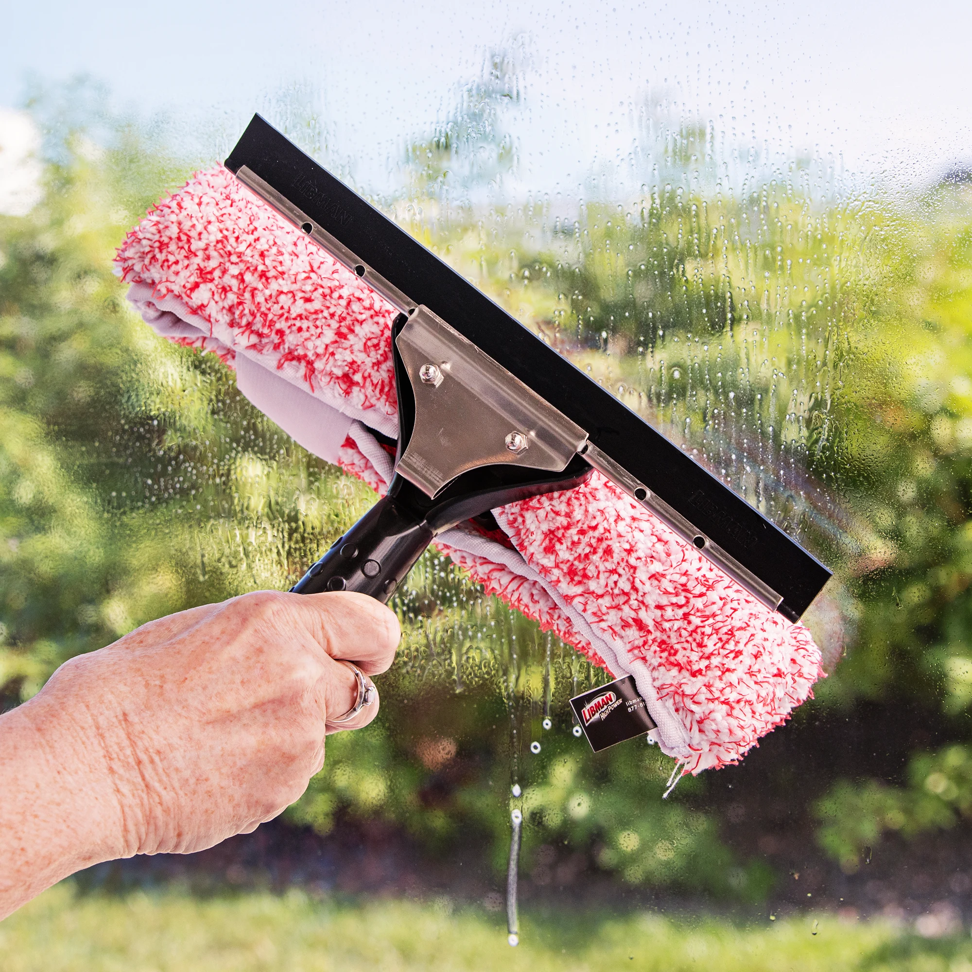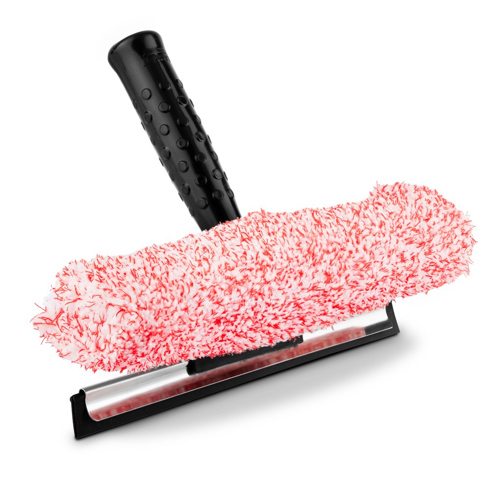 The 2-in-1 Window Washer is a microfiber cleaner with an attached rubber blade. It can be used wet or dry.