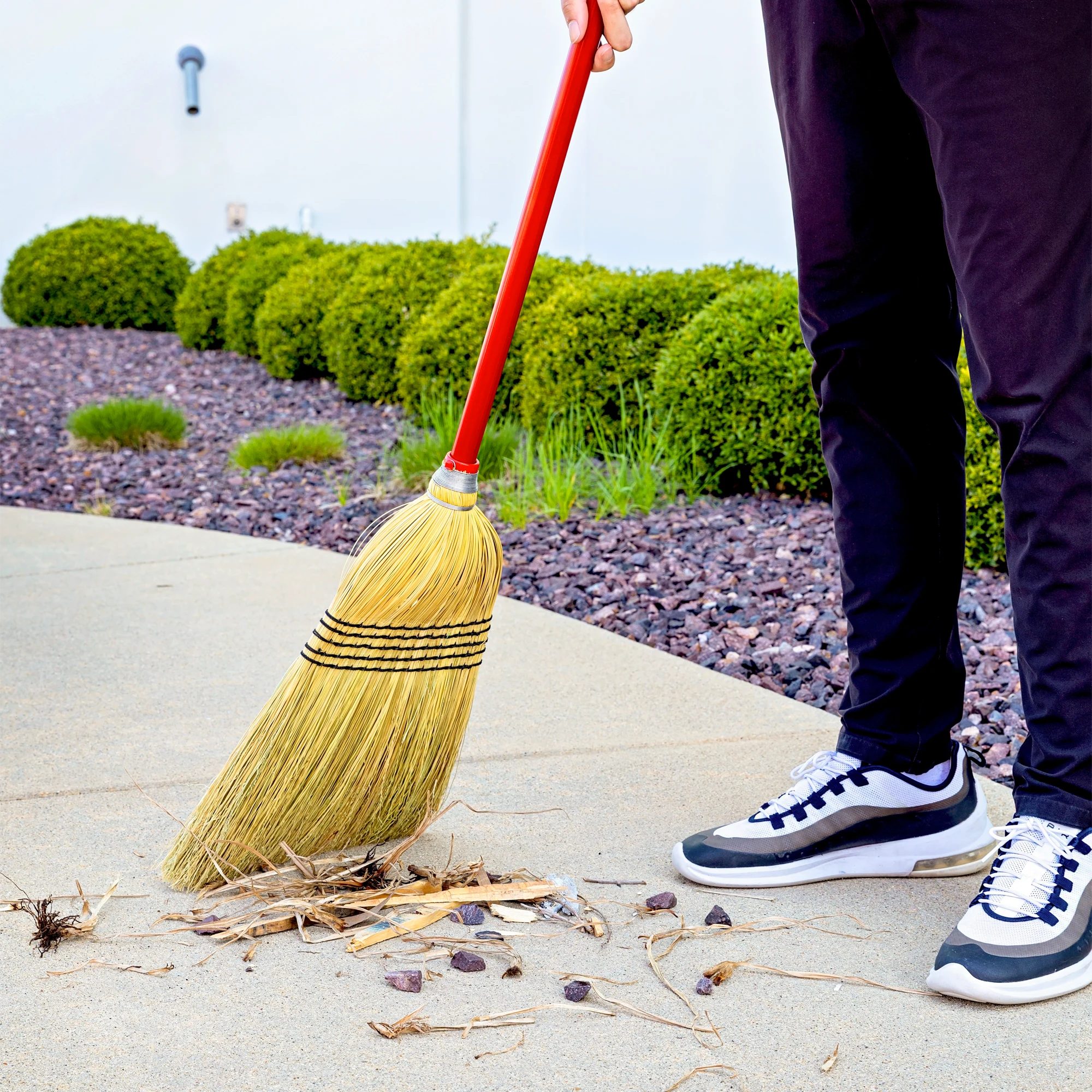 The Janitor Corn Broom has 100% premium broomcorn fibers and is bound by wire. This wide tool is perfect for heavy-duty sweeping.