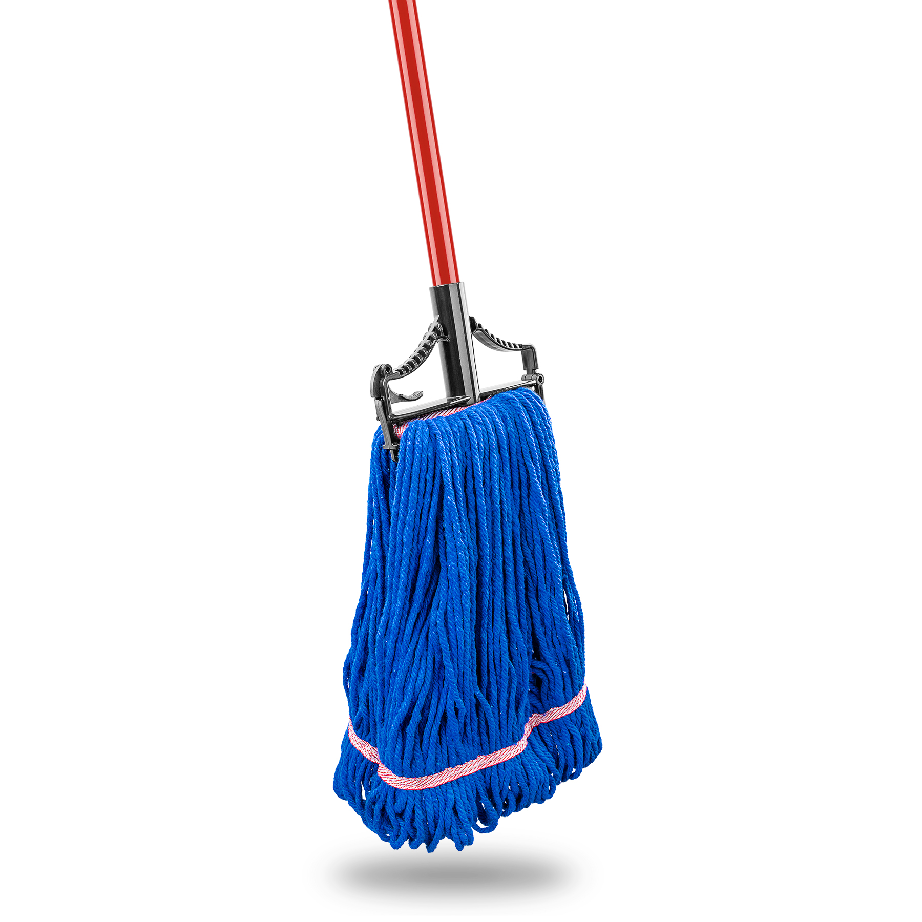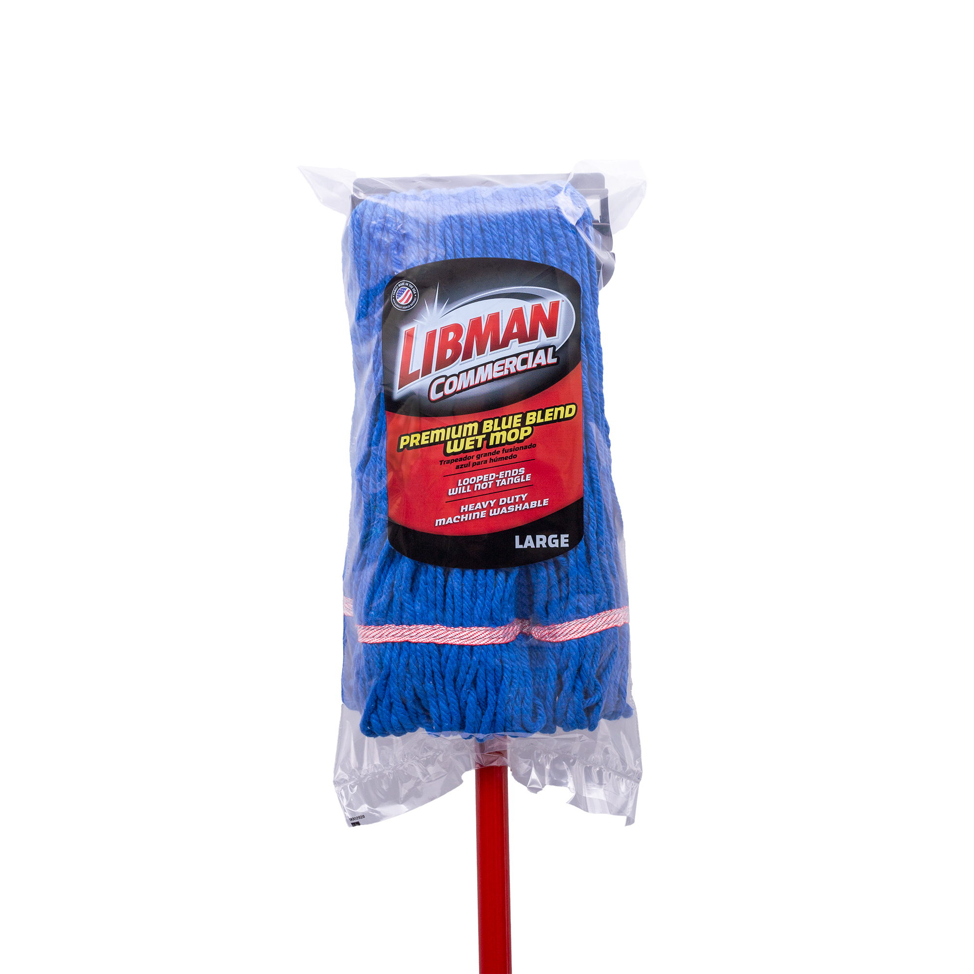 The Premium Blue-Blend Wet Mop is a commercial-strength string-style mop. It features a looped-end, premium blue blend of cotton and synthetic yarn.