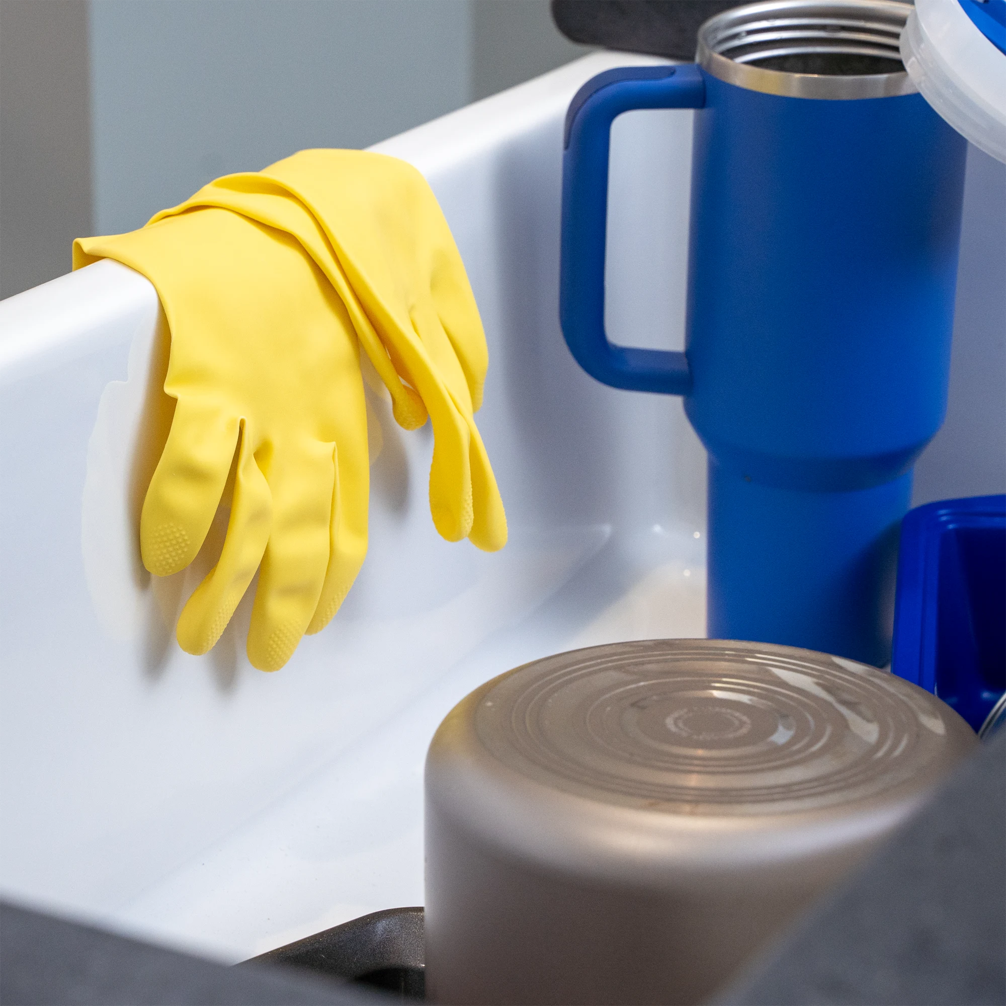 Protect your hands against animal fats, vegetable oils, mild acids, detergents, and alcohols with the All-Purpose Reusable Latex Gloves. The absorbent cotton flock lining wicks away sweat, enhancing your control and comfort while in-use. Designed for maximum comfort, the optimized fit helps prevent hand fatigue while worn.
