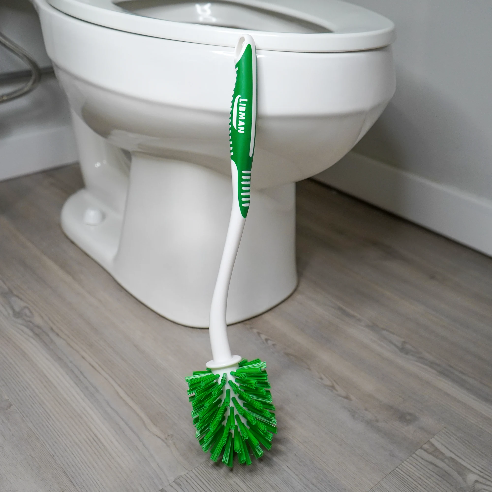 The Angled Toilet Bowl Brush has a curved design to scrub off debris. This brush also features a non-slip grip and a long handle.
