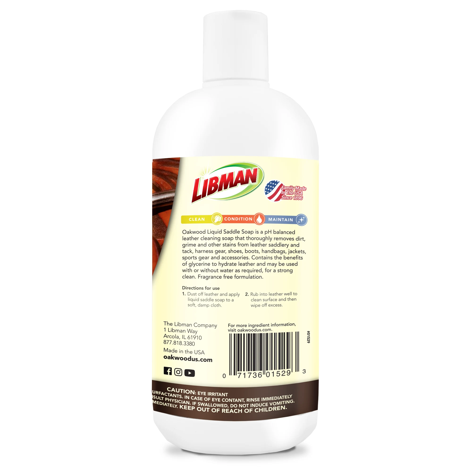 Remove dirt, grime, grease and other stains from your leather riding gear with Oakwood’s Liquid Saddle Soap.