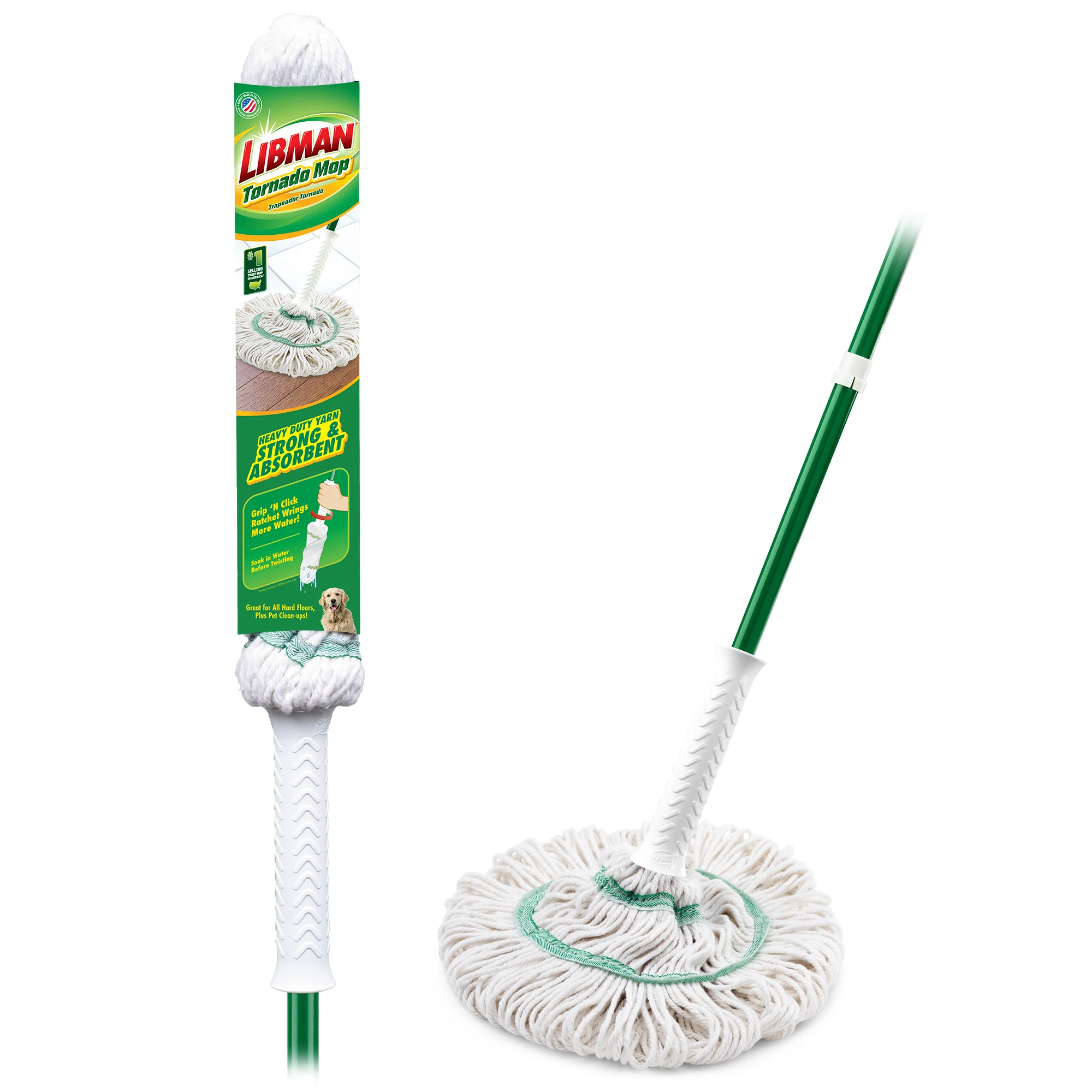 - Heavy-duty mop head is strong and absorbent