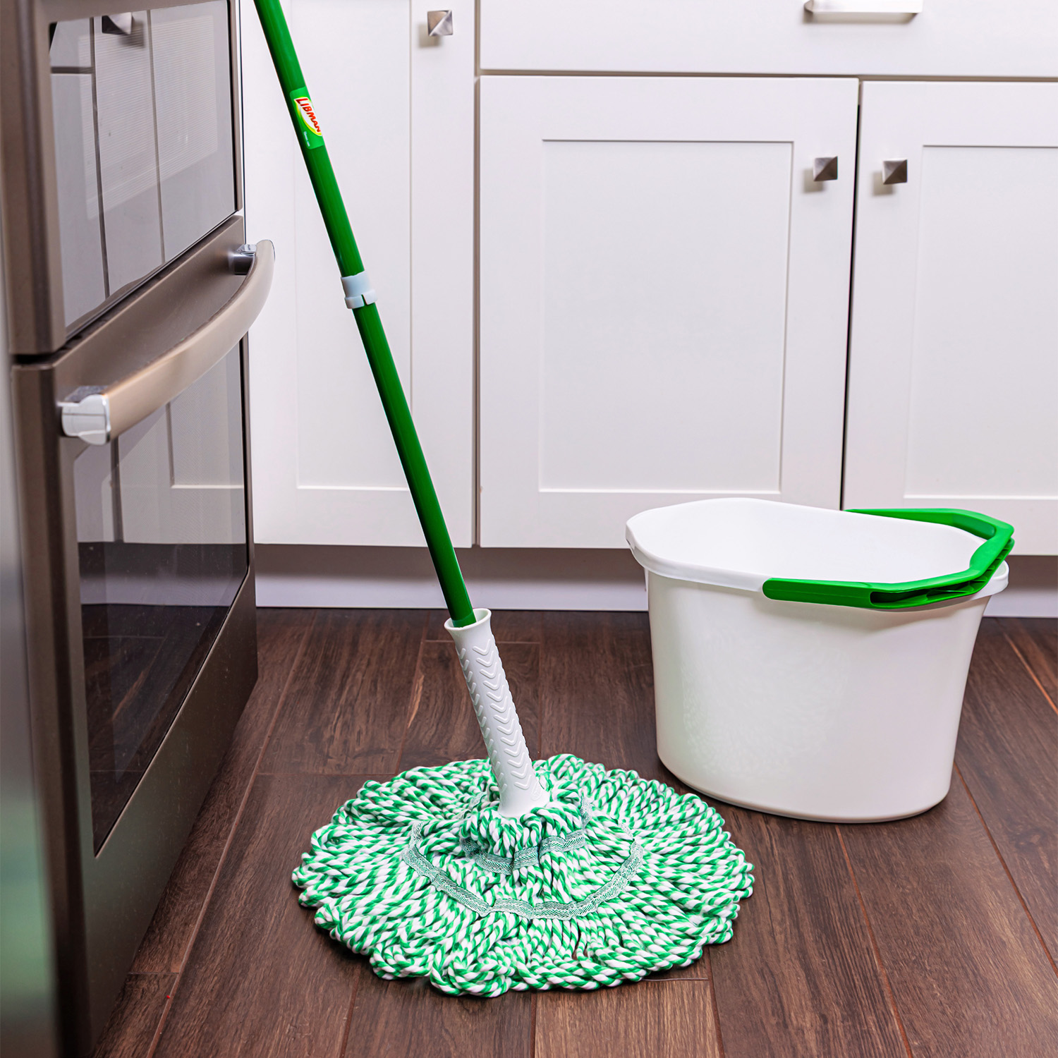 The Tornado Twist Mop™ is one of America’s top-selling mops, and there are many reasons why. Its large mop head enables you to clean more in less time. Wringing water out of the mop head is easy, thanks to its integrated Grip N’ Click ratchet wringer. Simply click the handle into place, then twist it to wring out dirty water!