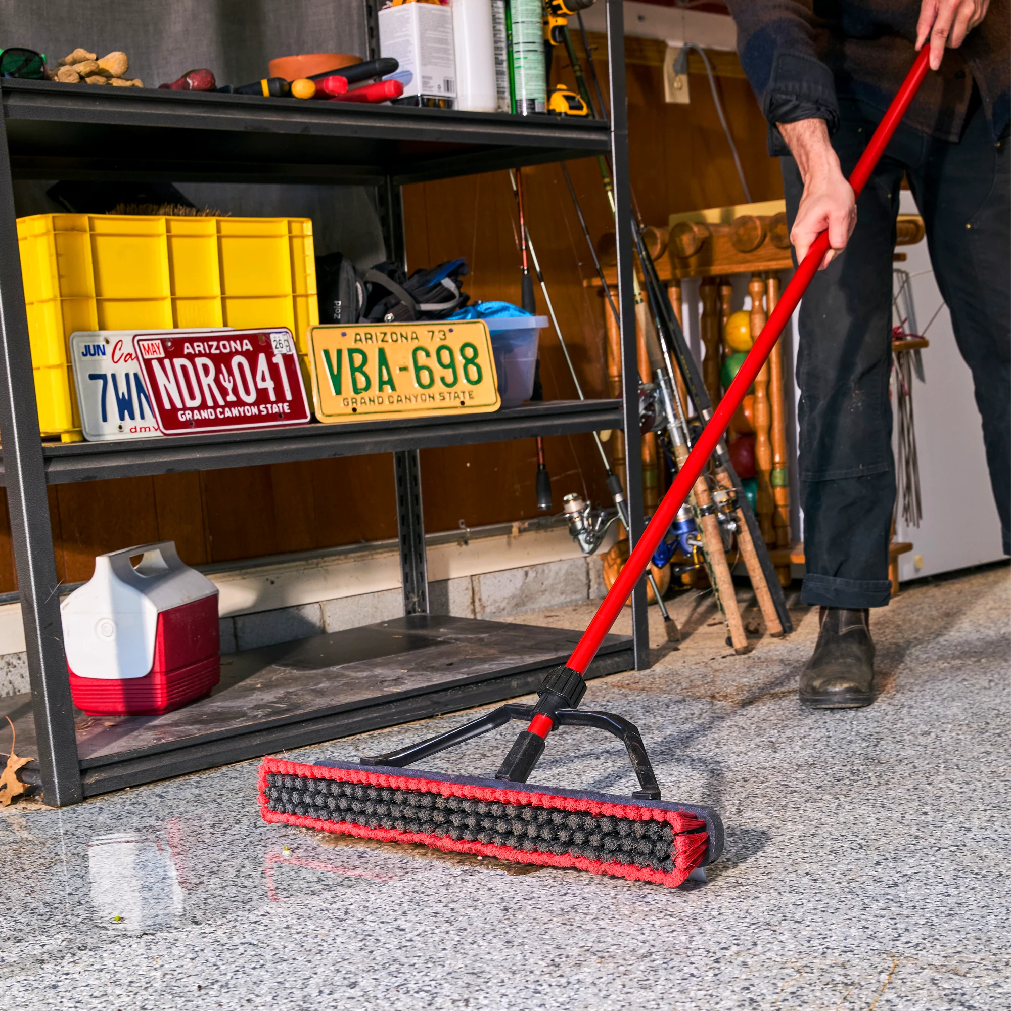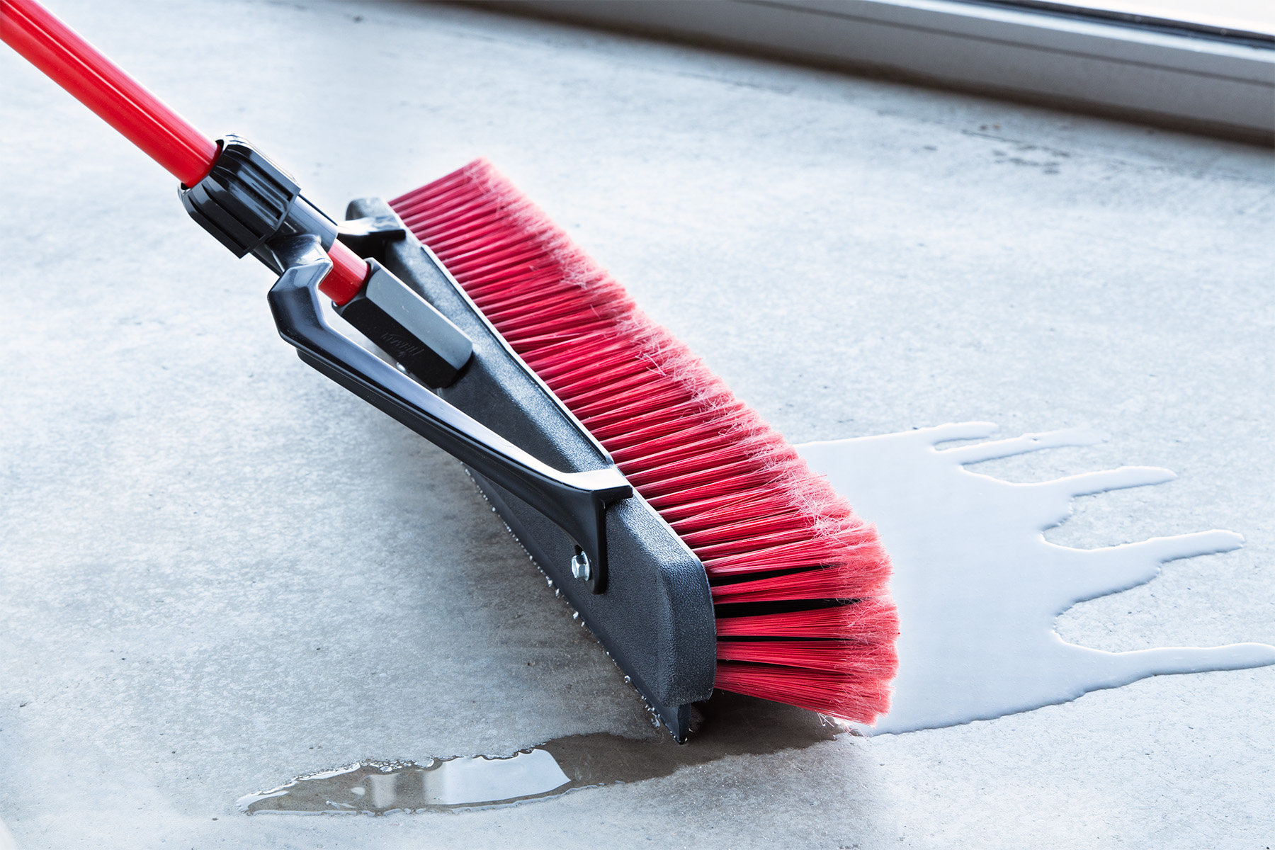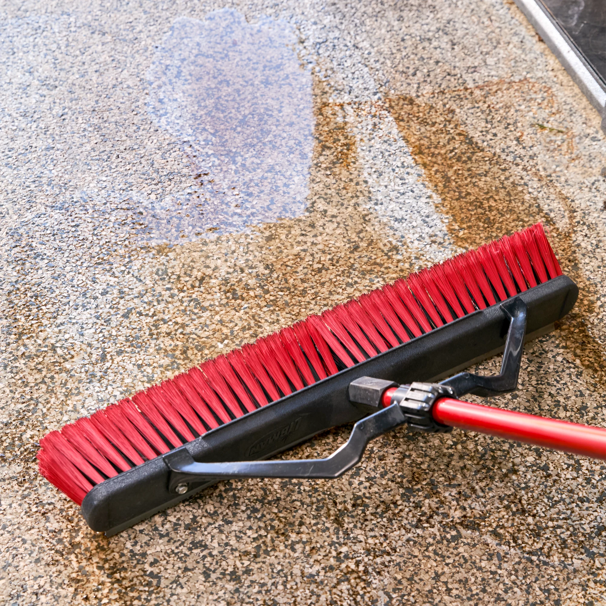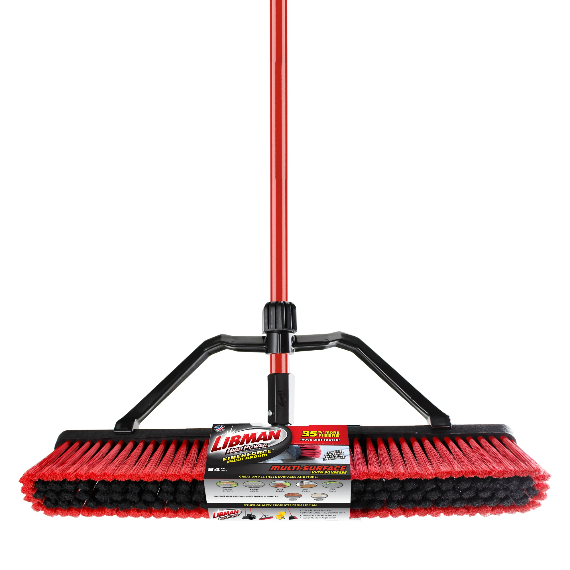 The 24" FiberForce™ Multi-Surface Push Broom with Squeegee cleans both wet and dry messes. The environmentally friendly broom fibers are made from recycled water bottles.