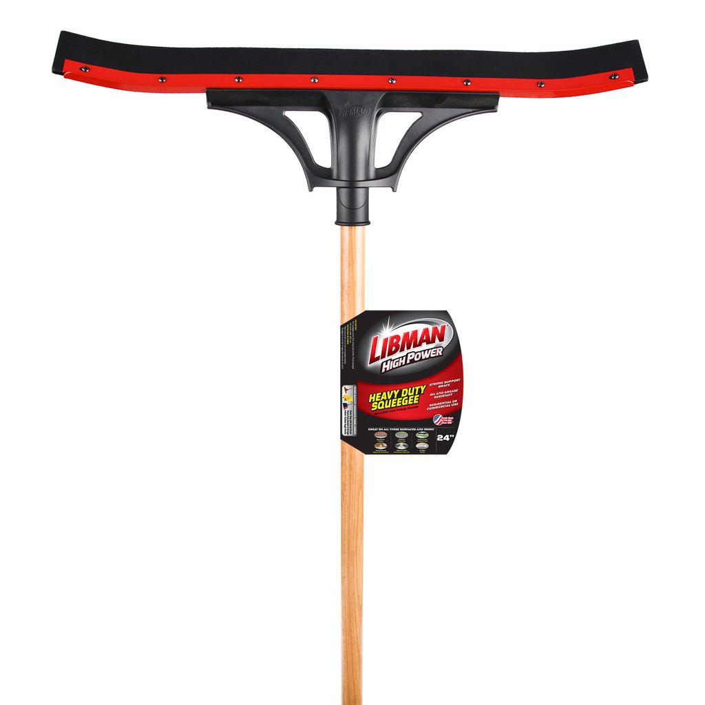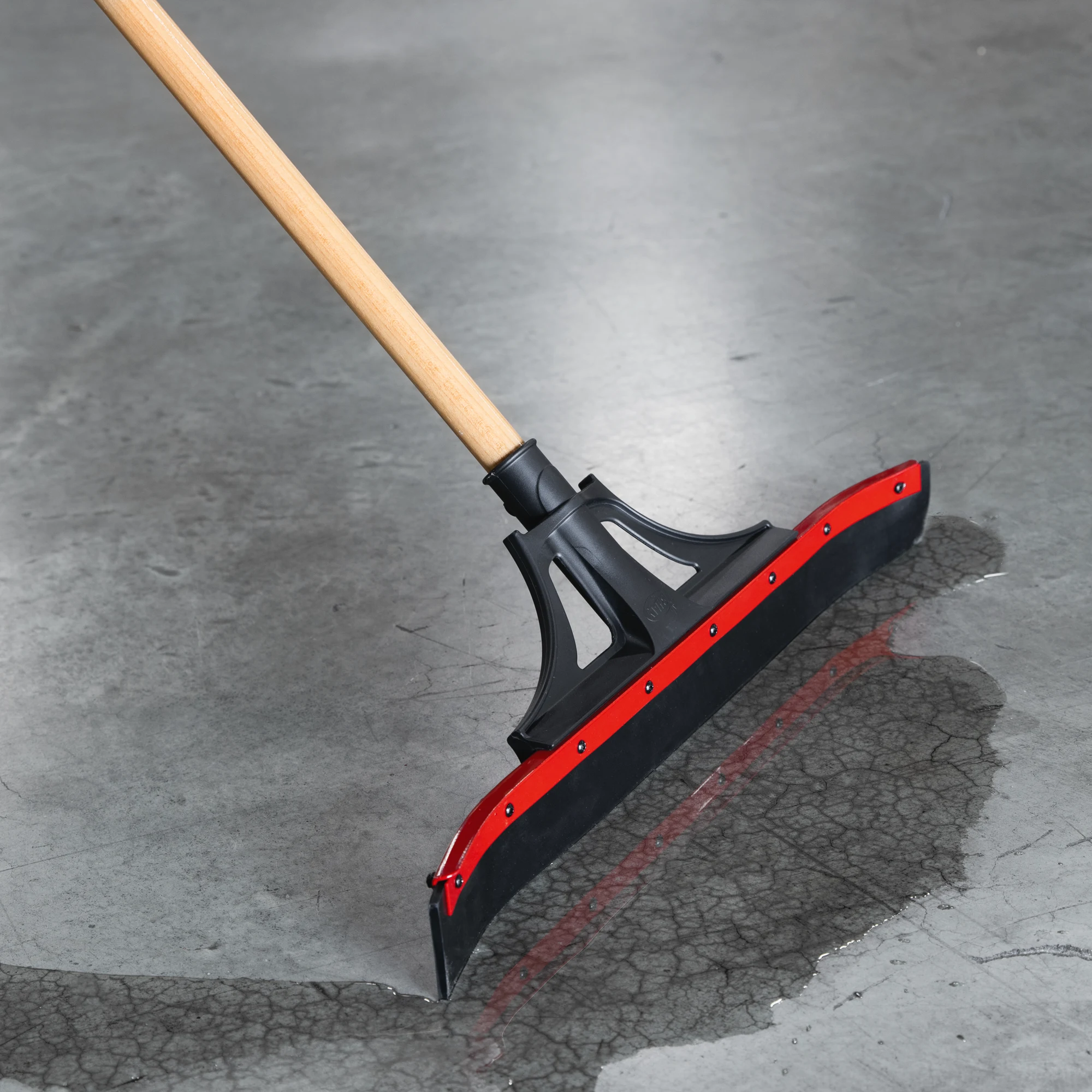 The Heavy-Duty Squeegee is a fully assembled curved-style floor squeegee with a wide squeegee blade made of real, vulcanized natural rubber.