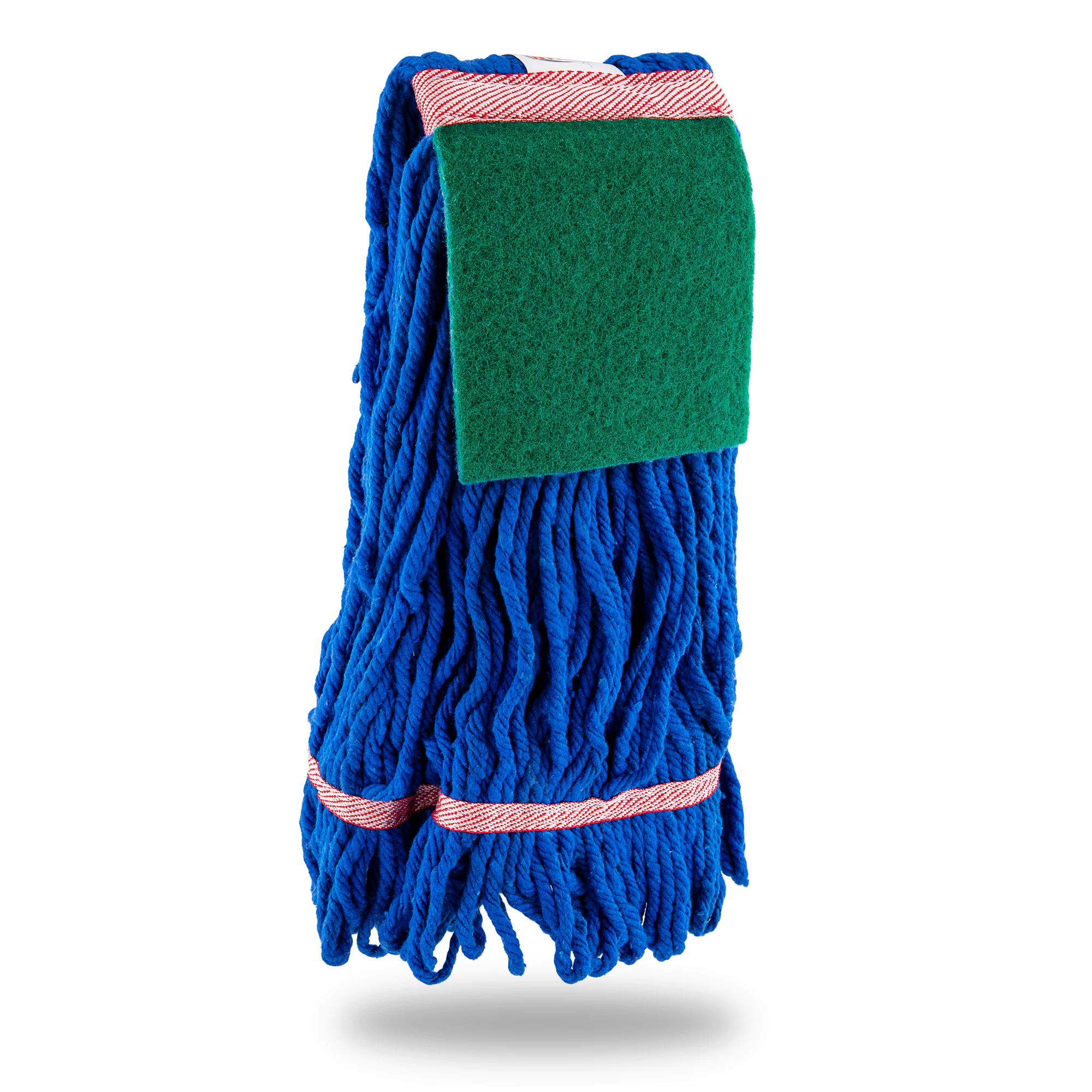 #1829 Large Blended Looped-End Wet Mop Head with Scrub Pad (Blue) Brick Pack