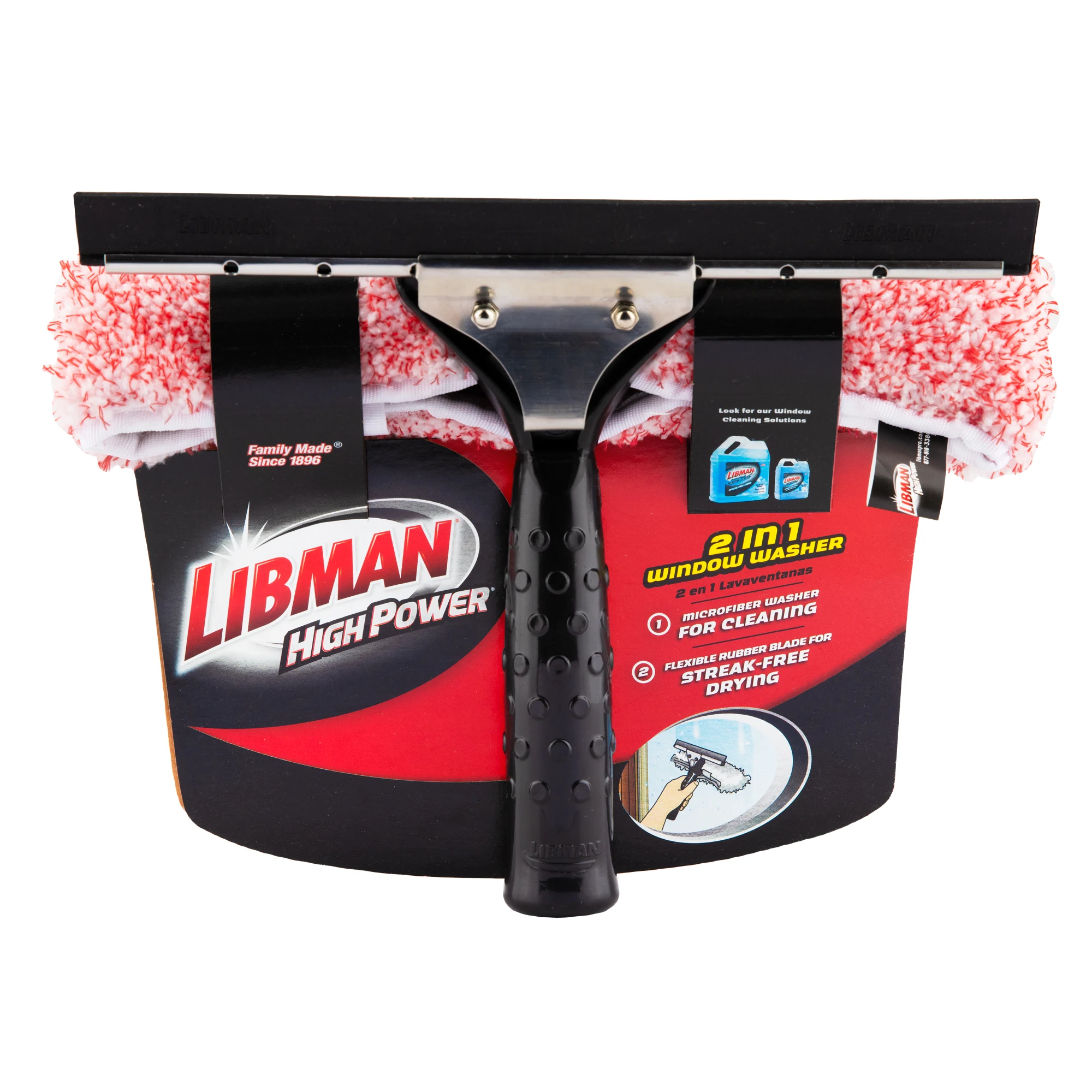 The 2-in-1 Window Washer is a microfiber cleaner with an attached rubber blade. It can be used wet or dry.