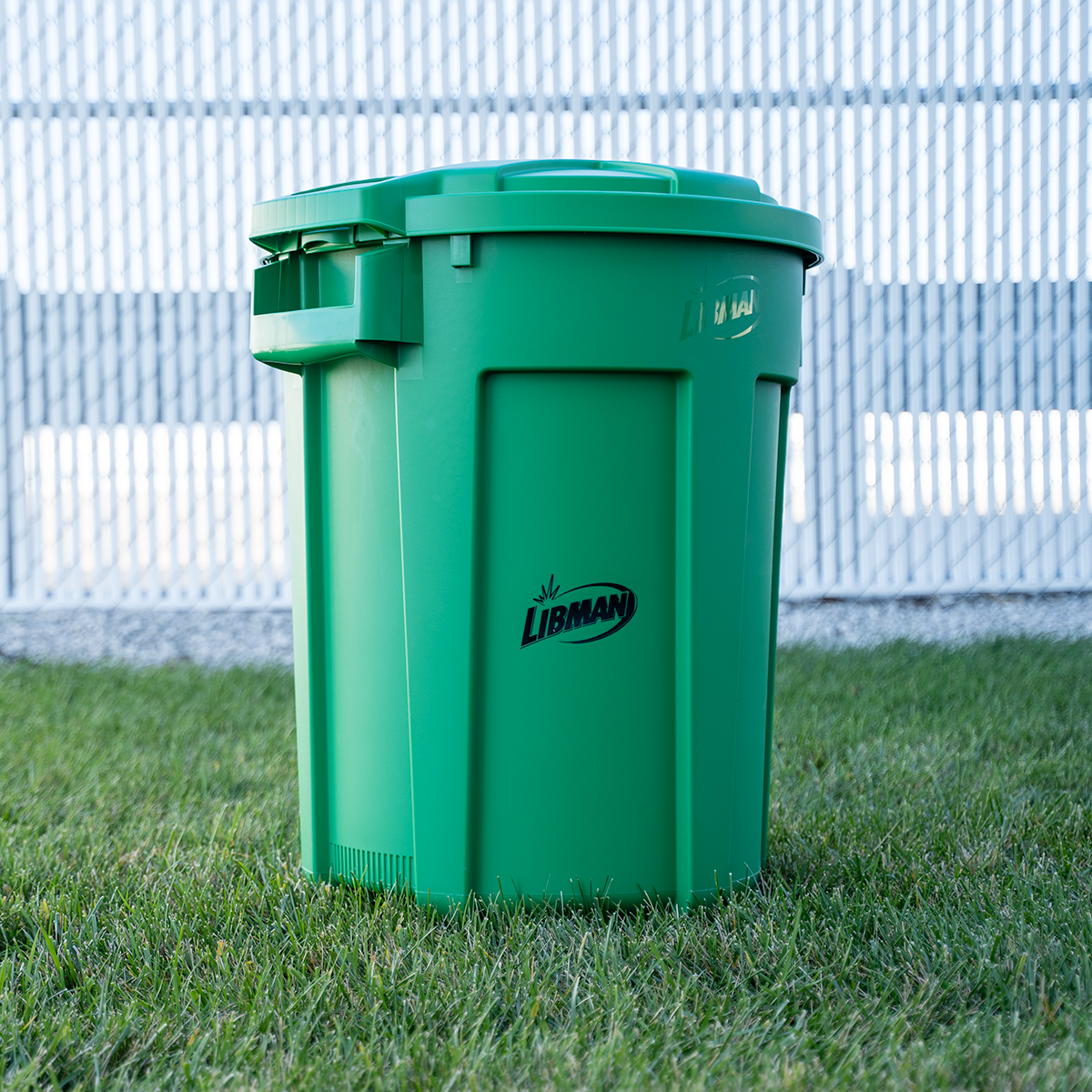 The 32-Gallon Trash Can with Lid is strong and durable, designed for use at home or the workplace. Made from linear low-density polyethylene, the can will not bend or warp and resists cracking in cold weather. The heavy-duty reinforced handles have been designed to resist bending or breaking. The color-matching snap-on rounded lid adds more capacity, while the integrated venting channels make it easy to lift out bags without getting stuck in the can. The reinforced, durable base withstands being dragged over even the roughest surfaces.