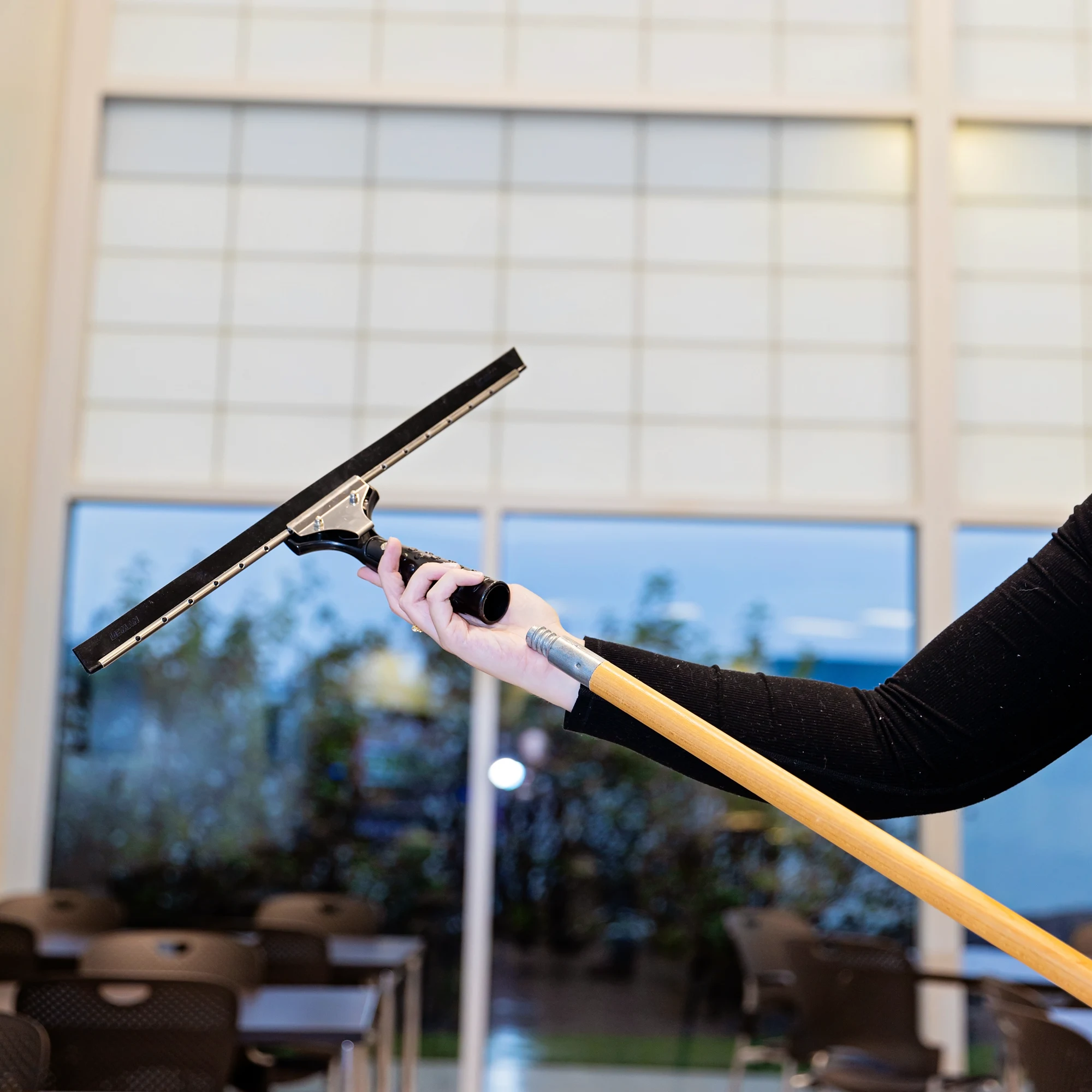 The 60” Zinc-Thread Wood Handle is a wood handle that fits tapered ends, push brooms, floor squeegees, and more. The 1” thick wood handle has a zinc thread.
