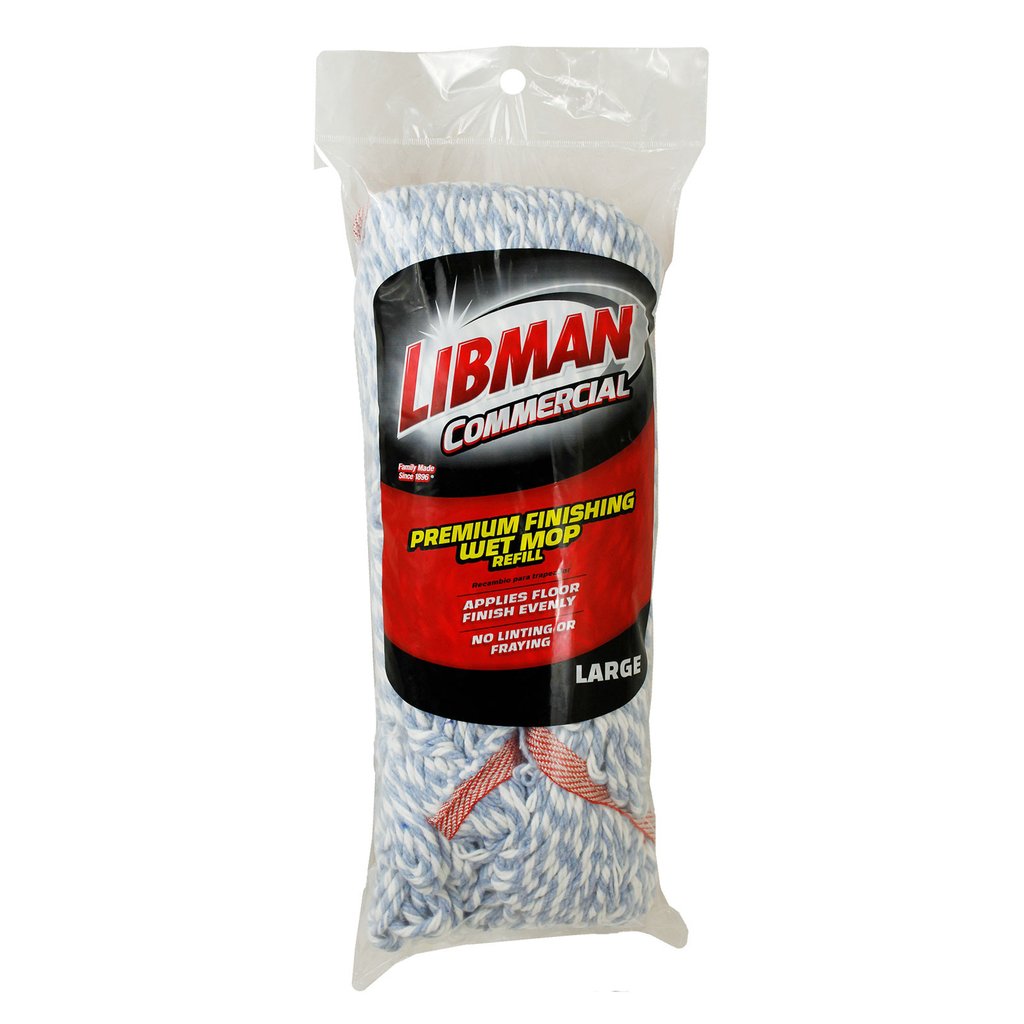 The Large Rayon Looped-End Wet Mop Head is a commercial-strength string-style mop head. It features a looped-end, premium blue blend of cotton and synthetic yarn.