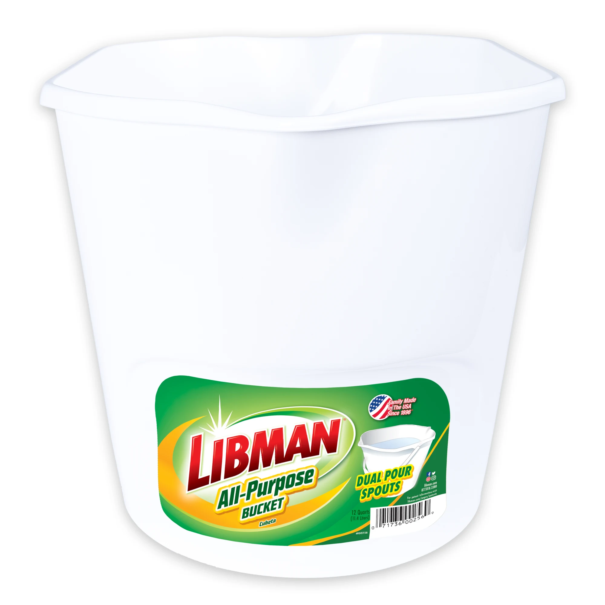 The All-Purpose Bucket has a 3-gallon capacity and features dual-sided spouts for easy liquid removal. It also carries household tools like sponges, rags, and cleaning products for easy access.