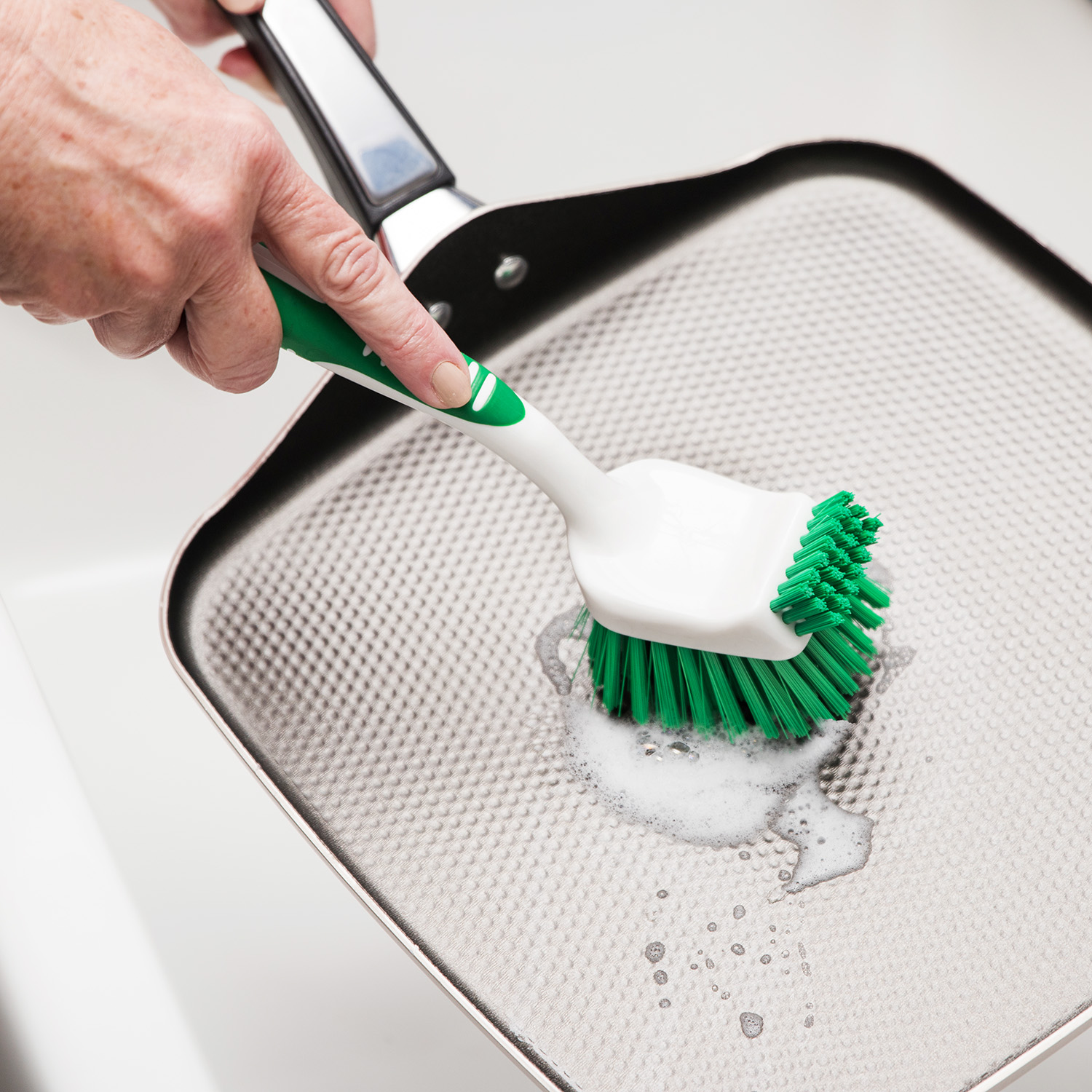 The Big Job Kitchen Brush is a 2-in-1 tool designed for heavy-duty kitchen tasks. Its thick bristles cut through grease and debris, while the built-in scrub brush tackles the toughest messes.