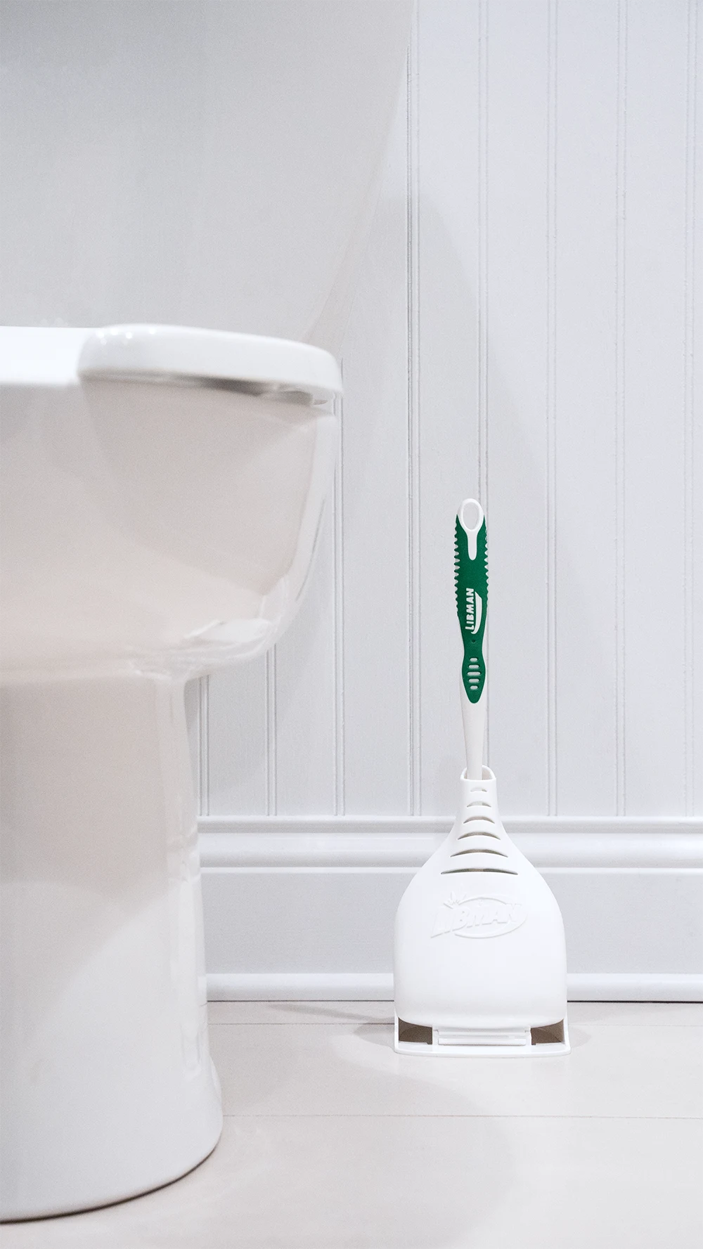 The brush and caddy are designed to look great in any bathroom. The specifically-designed caddy will not tip over and facilitates fast drying.