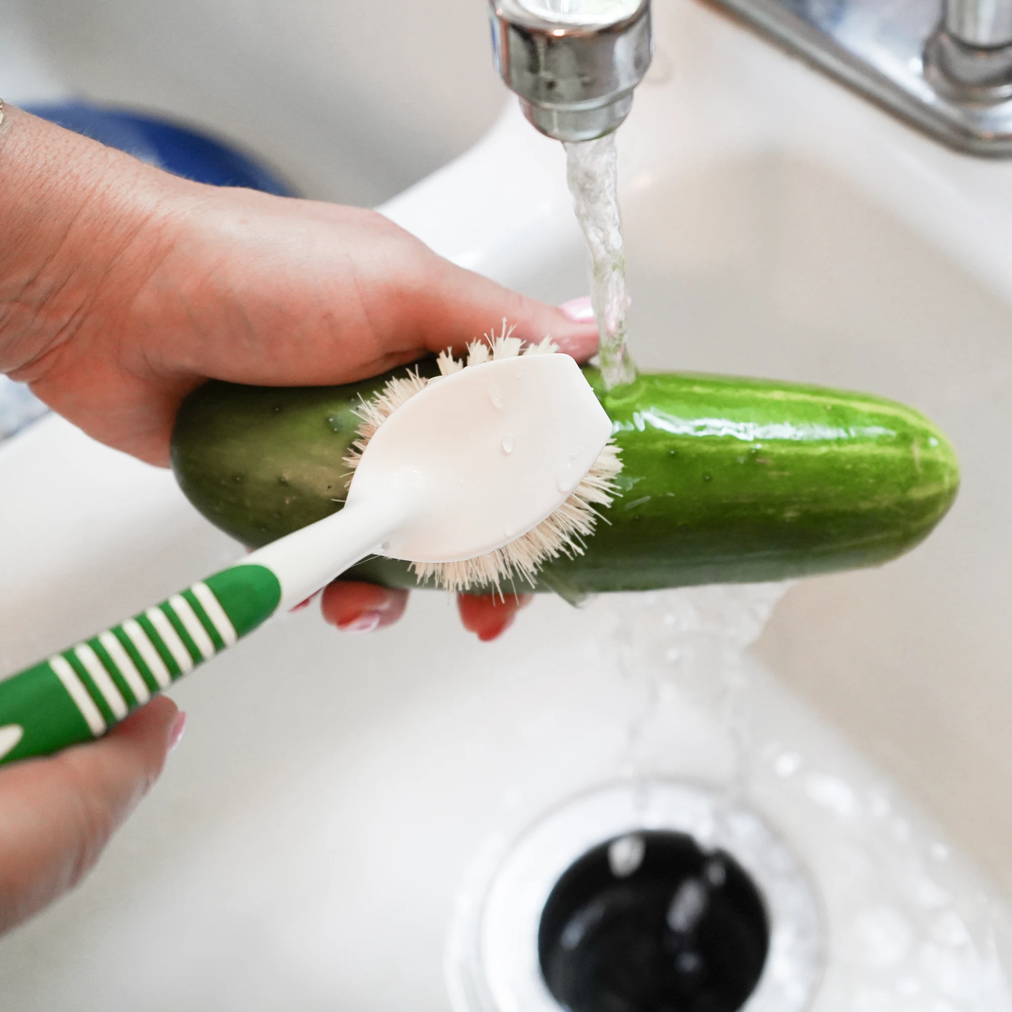 The Kitchen & Vegetable Brush contains natural tampico fibers for a firm yet flexible cleaning experience in the kitchen. The brush’s scraper edge helps remove extra debris.
