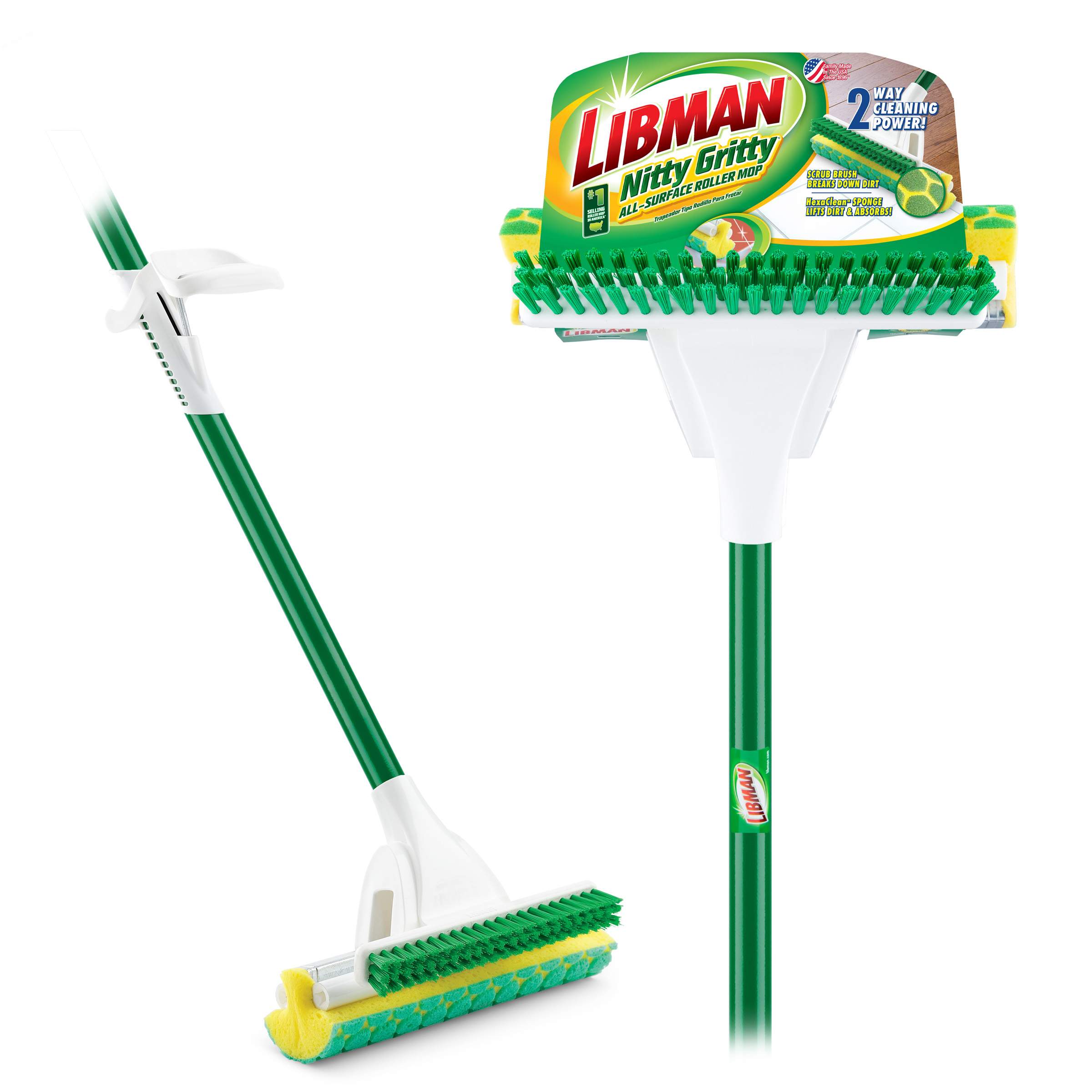 Squeeze every ounce of dirt and grime out of your floors with the Nitty Gritty® All-Surface Roller Mop. The HexaClean™ tear-resistant mop head absorbs 10x its weight and helps you lift dirt away from vinyl, linoleum, wood, laminate, marble, stone, or ceramic tile. The easy-wring handle makes getting dirty water out of the absorbent mop head a breeze without having to get your hands dirty. When you have harder-to-clean areas, the Nitty Gritty® All-Surface Roller Mop features a convenient brush that gets into even the toughest areas. When you need to scrub, mop, and wring, the Nitty Gritty® All-Surface Roller Mop should be your go-to mopping tool.