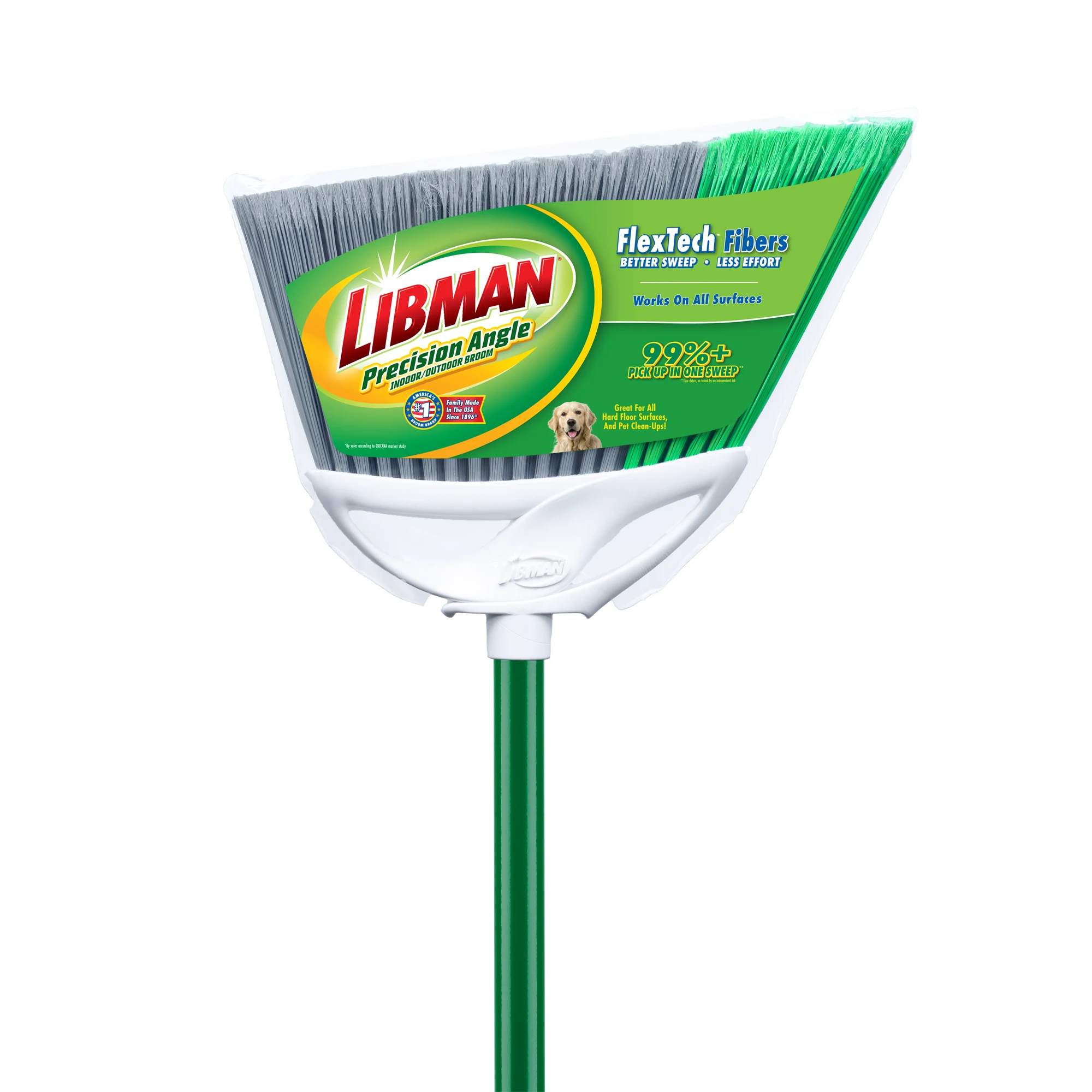 Make clean-up a snap with the Precision Angle® Indoor/Outdoor Broom. Featuring 5-inch long FlexTech™ fibers made from recycled PET bottles, these fibers are precisely cut to remove 99% of dust, dirt, and hair in one sweep. The guaranteed quality construction of the Precision Angle® Broom makes it the ideal cleaning tool for sweeping up inside or out.