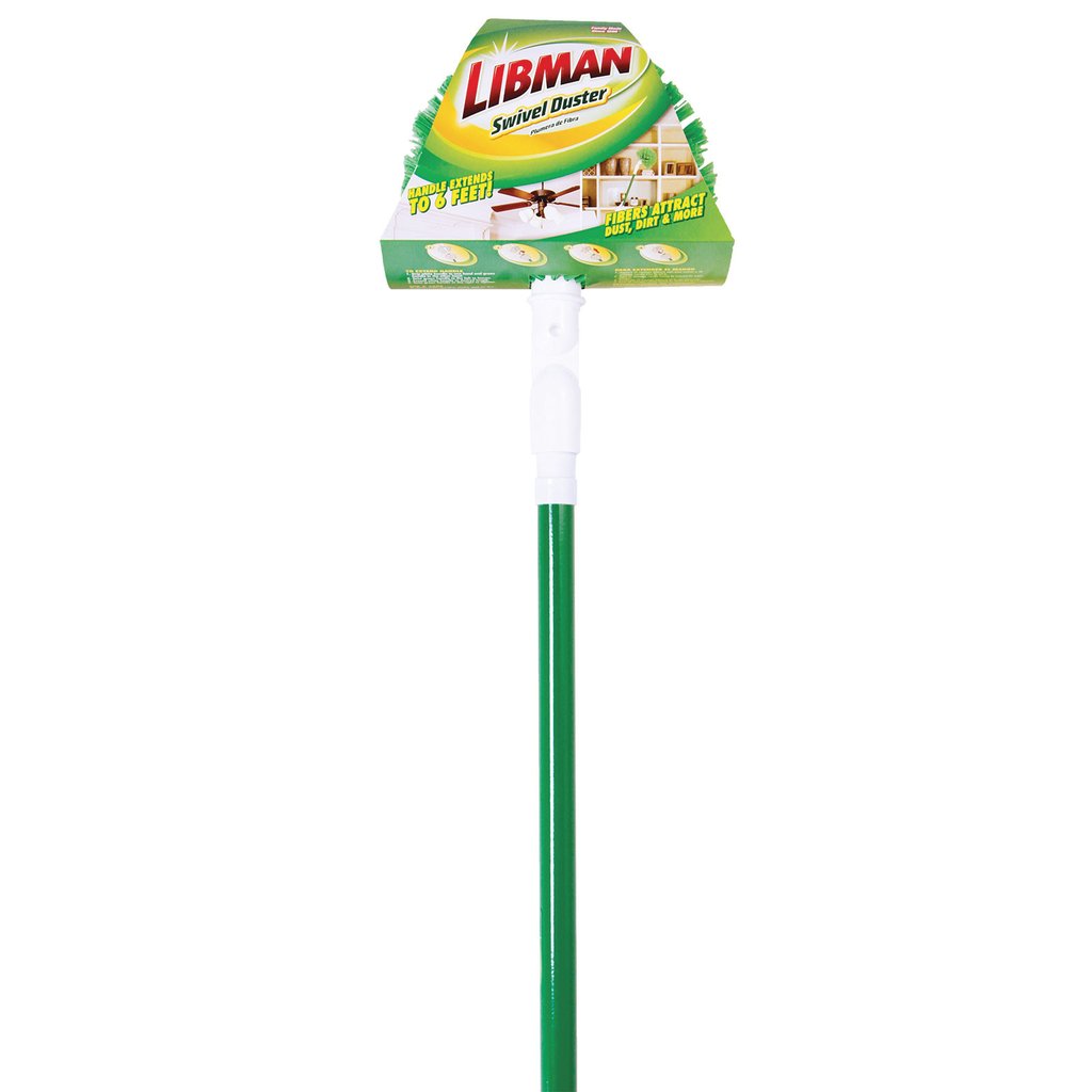 The Swivel Duster features electrostatic fibers made from recycled water bottles. Its pivoting head and extension capabilities help this duster easily catch dust, hair, and cobwebs.