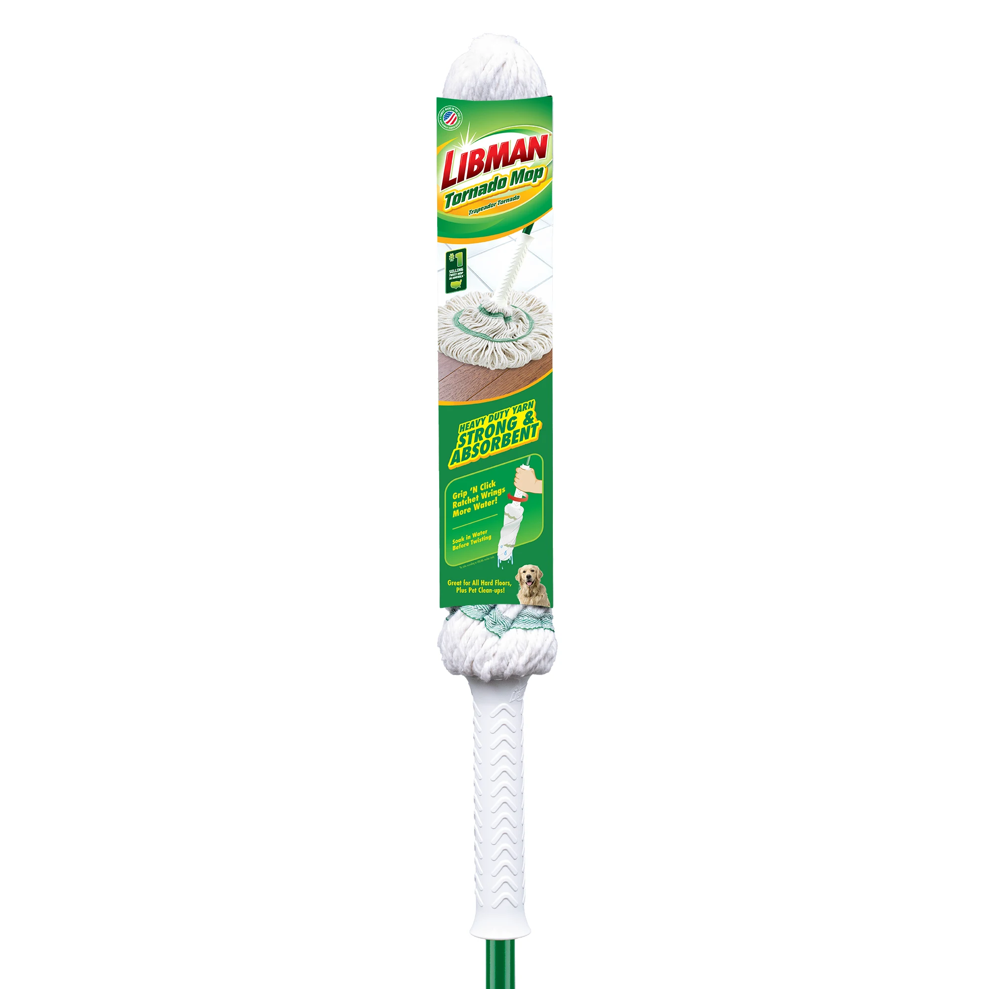 - Heavy-duty mop head is strong and absorbent