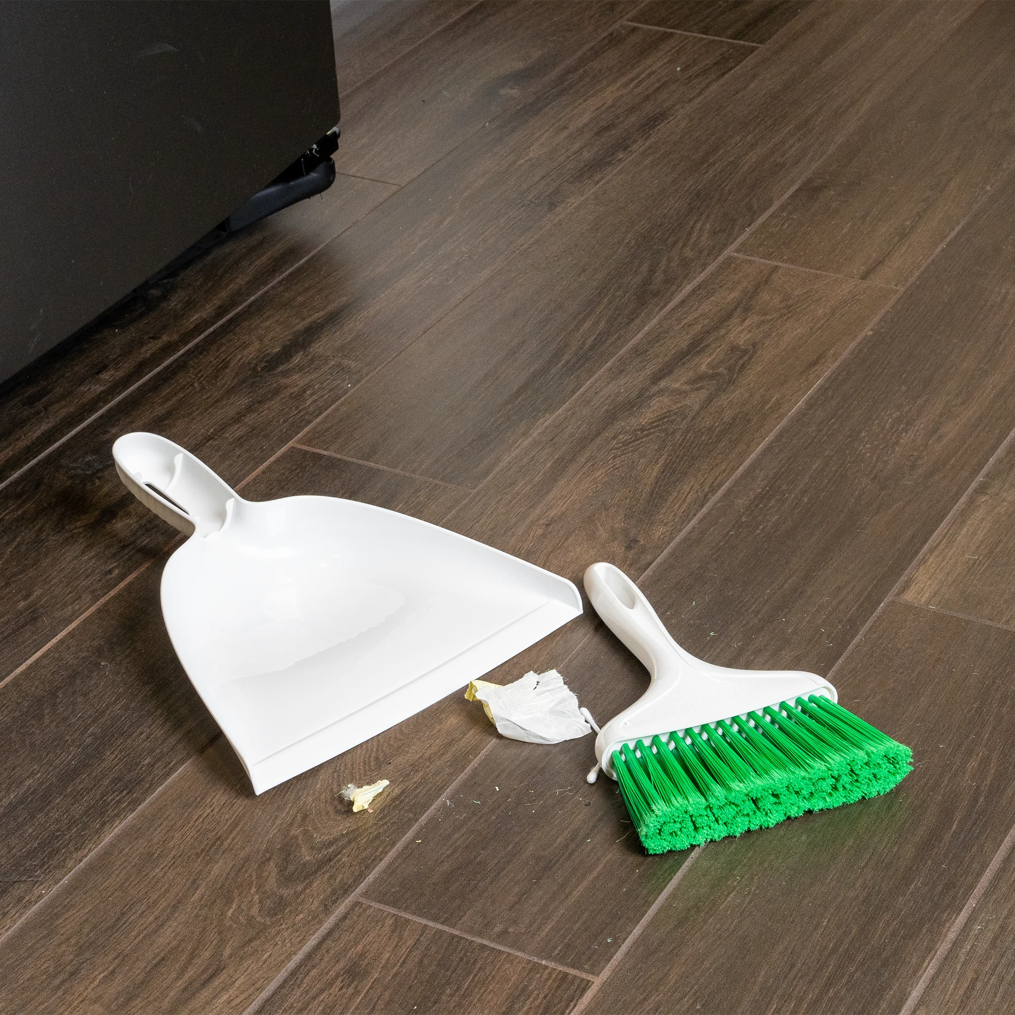 The Whisk Broom with Dustpan is the go-to tool for your on-the-go needs. This set boasts a 6.75” wide whisk broom and a 10.25” wide dustpan opening with an easy-snap handle and hanger hole that is handy in every setting.